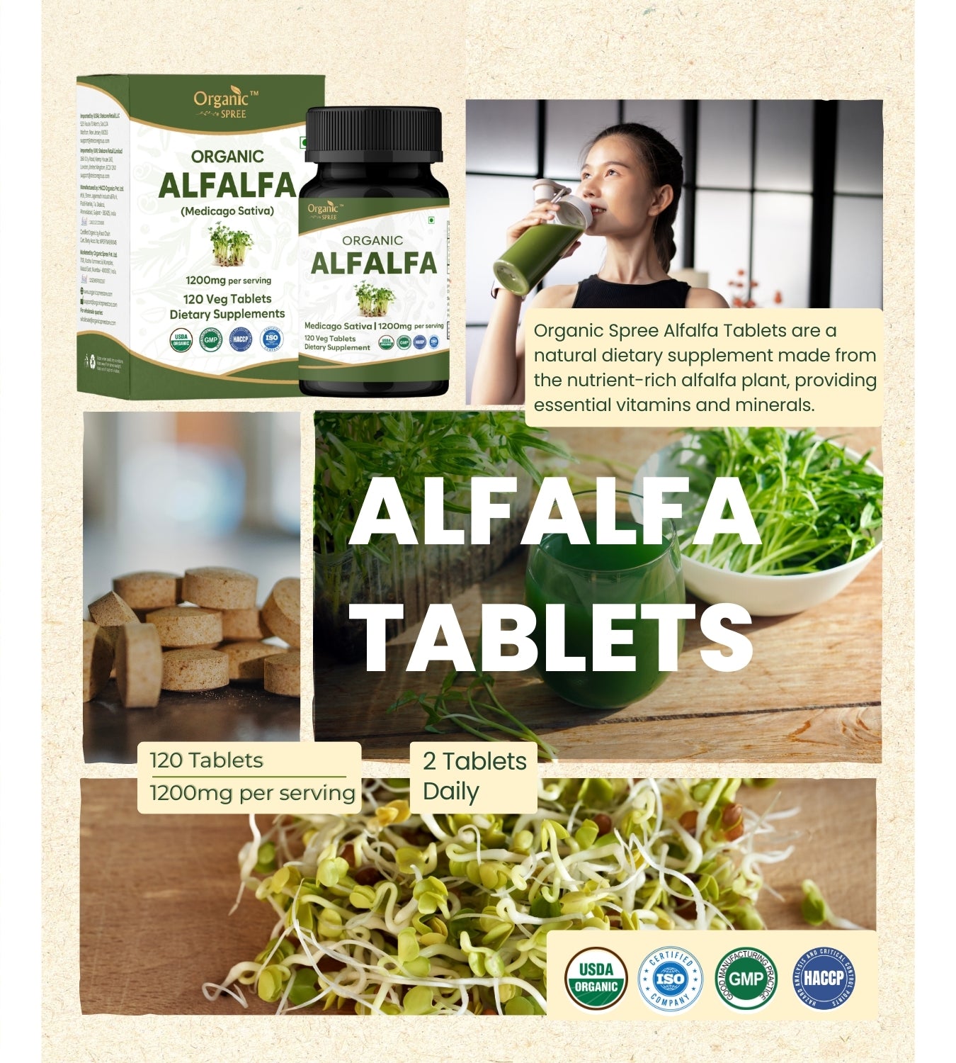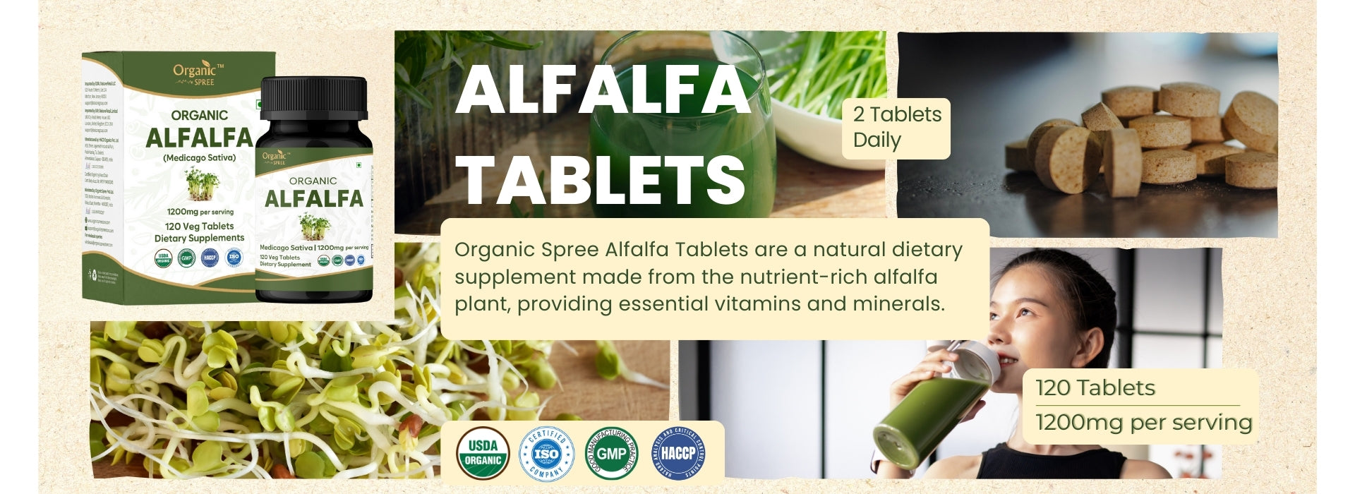 Organic Spree Alfalfa 120 Tablets - Organic Certified