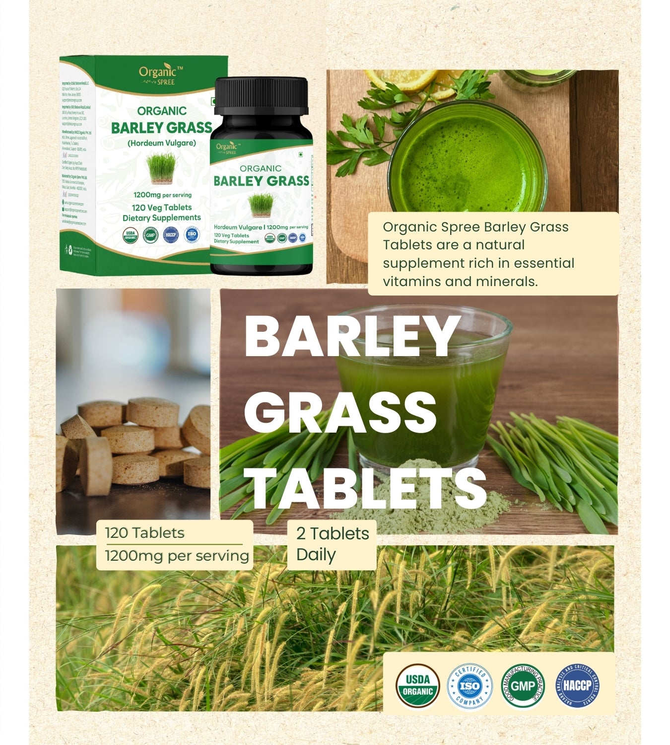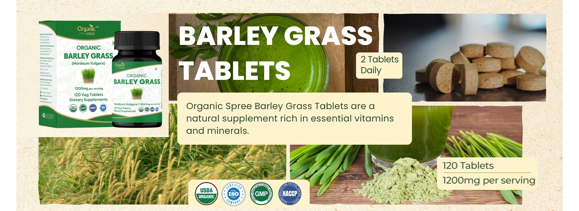 Organic Spree Barley Grass 120 Tablets - Organic Certified