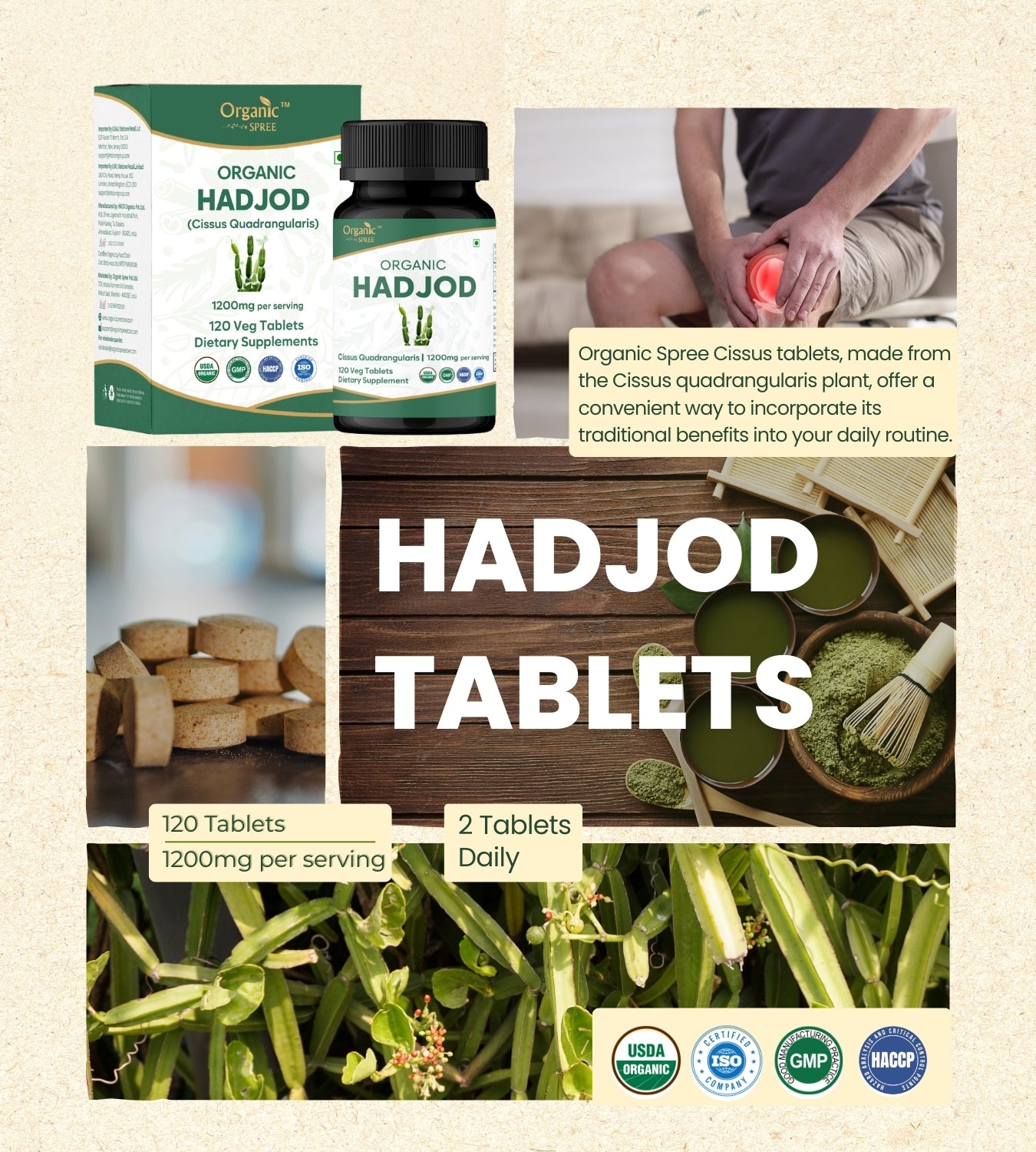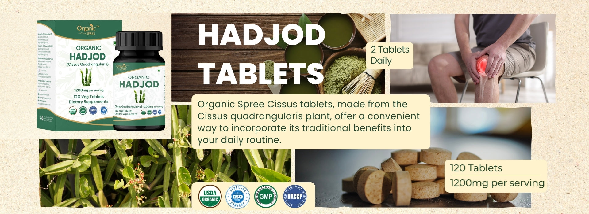 Organic Spree Hadjod (Cissus) 120 Tablets - Organic Certified